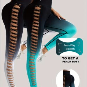 CK1025 (2Pack)Tie Dye Hollow Out Seamless High Waisted Workout Leggings for Women Scrunch Butt Lifting Yoga Gym Athletic Leggings