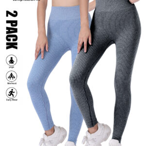 CK1027(2Pack)Ribbed Seamless Leggings for Women High Waist Workout Gym Athletic Yoga Pants