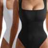 LT3005 Women’s Bodysuits Sexy Ribbed Strappy Square Neck Sleeveless Tummy Control Tank Tops Bodysuits